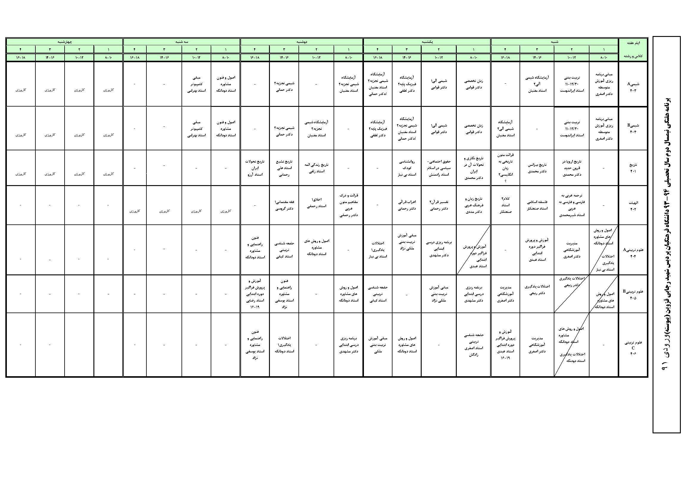 برنامه هفتگی نیمسال دوم سال تحصیلی 4-93 پردیس شهید رجایی قزوین دانشجویان پیوسته ورودی 91