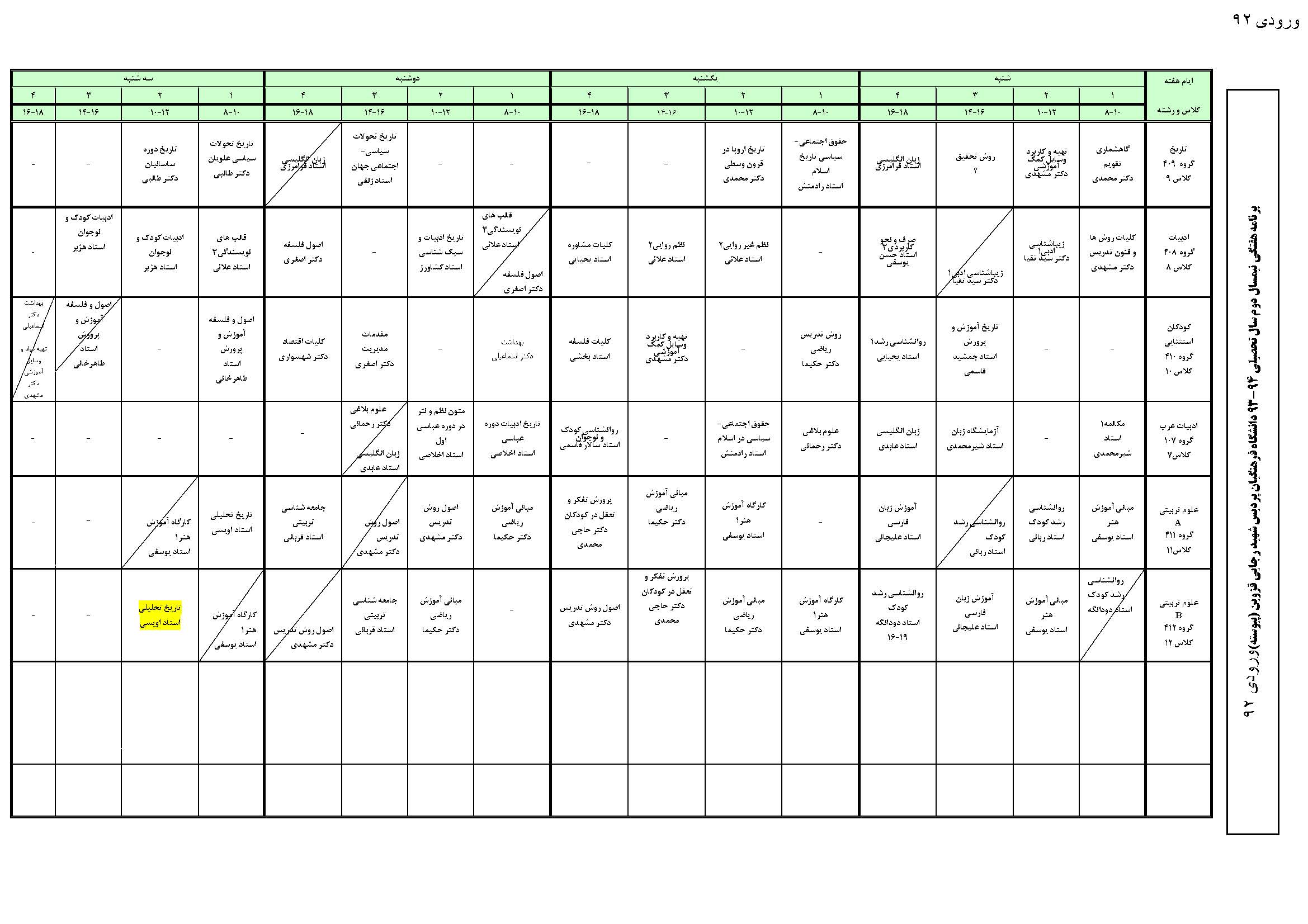 برنامه هفتگی نیمسال دوم سال تحصیلی 4-93 پردیس شهید رجایی قزوین دانشجویان پیوسته ورودی 92