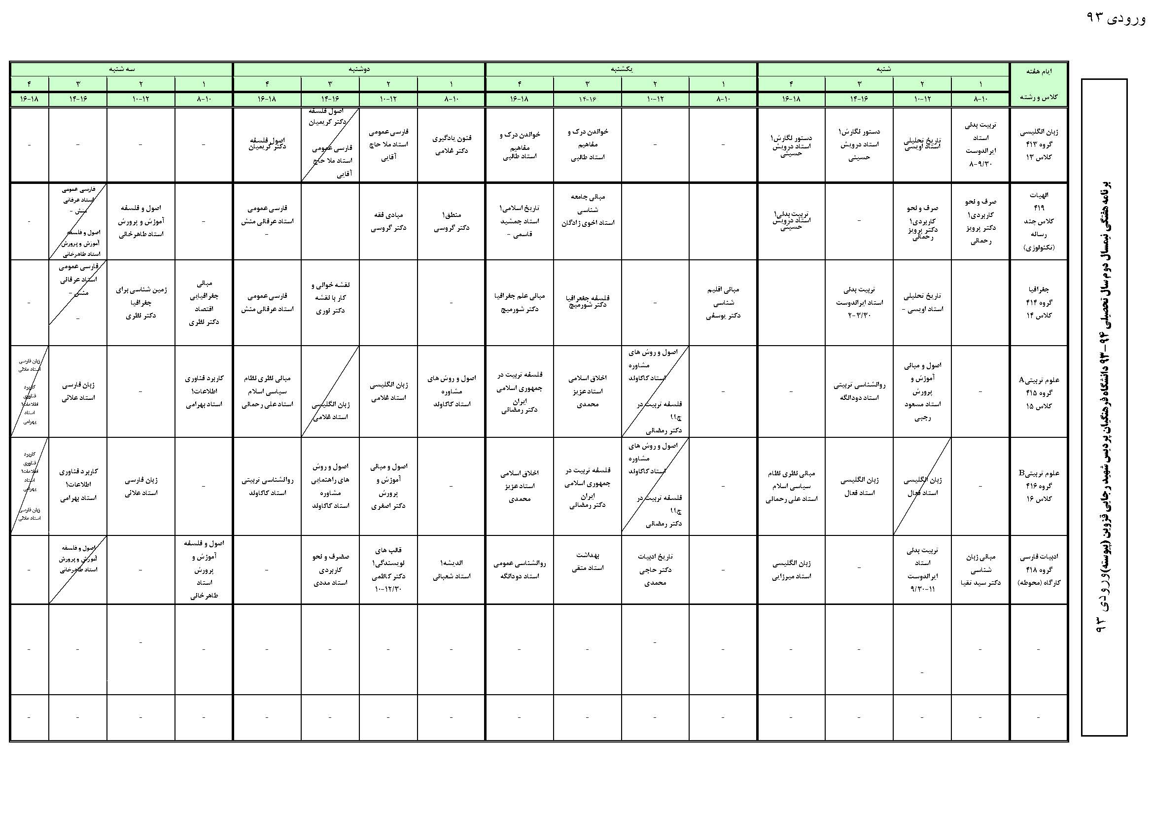 برنامه هفتگی نیمسال دوم سال تحصیلی 4-93 پردیس شهید رجایی قزوین دانشجویان پیوسته ورودی 93