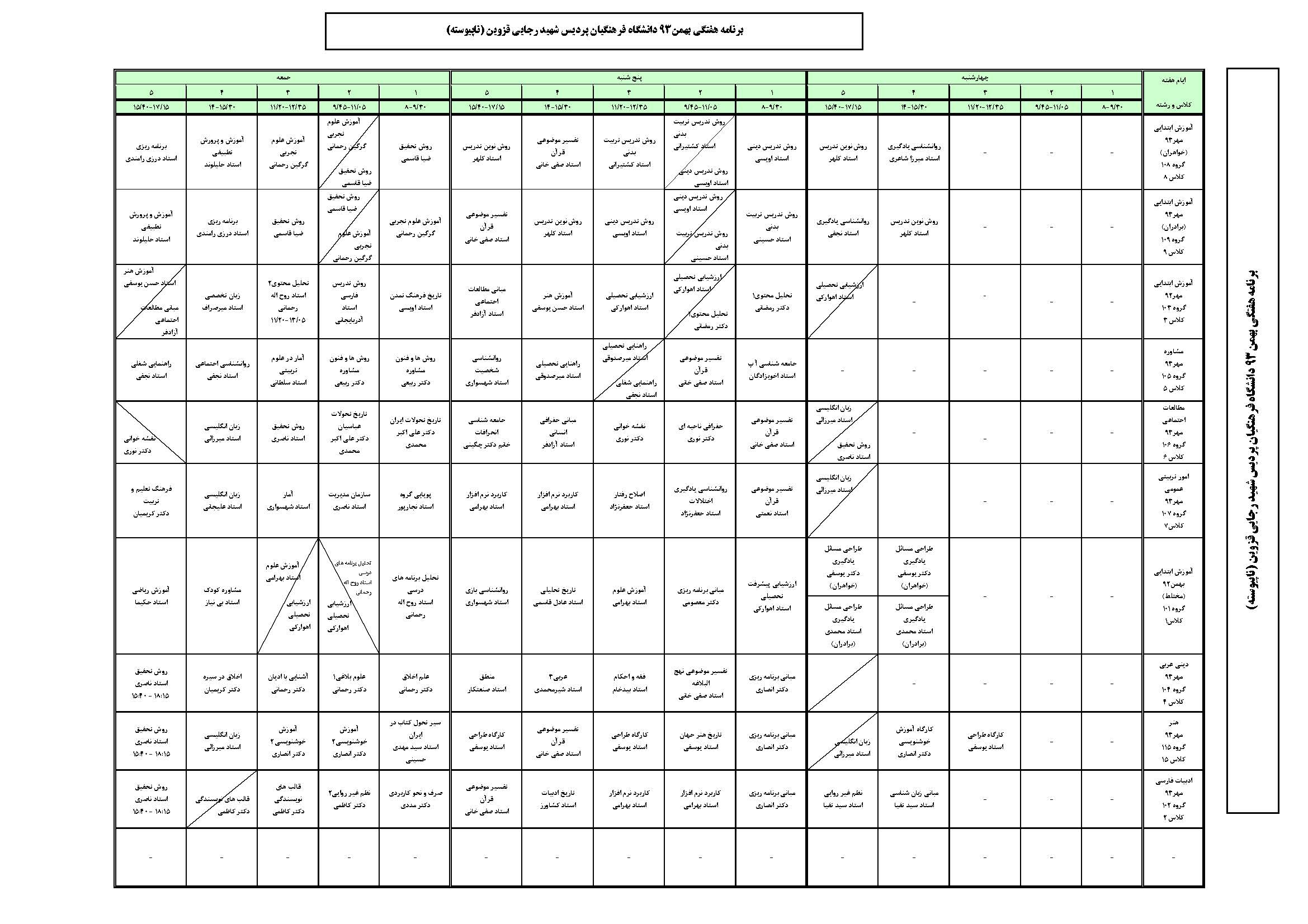 برنامه هفتگی نیمسال دوم سال تحصیلی 4-93 پردیس شهید رجایی قزوین
