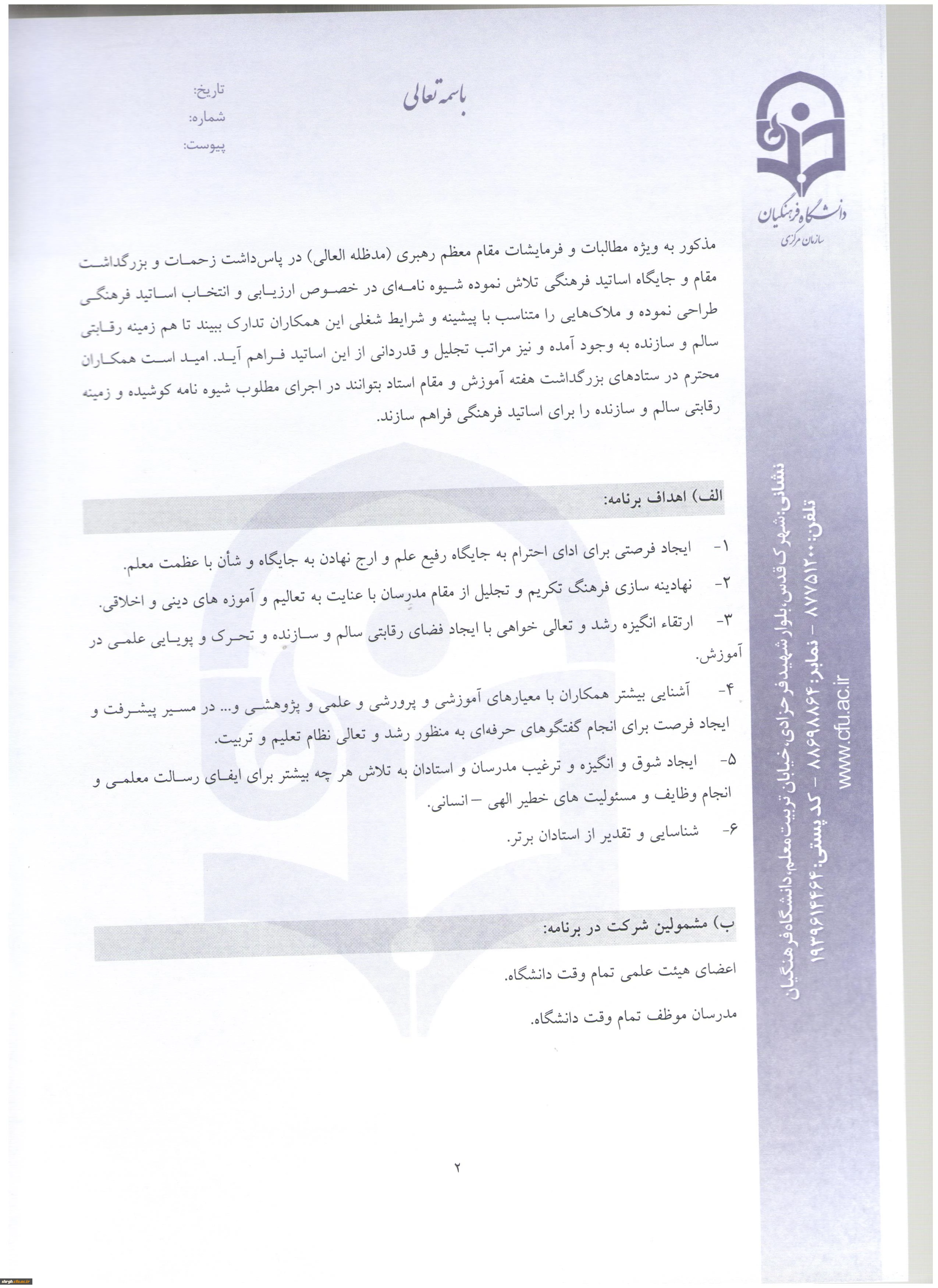 شیوه نامه بزرگداشت هفته آموزش و دستورالعمل انتخاب اعضای هیئت علمی نمونه دانشگاه 3