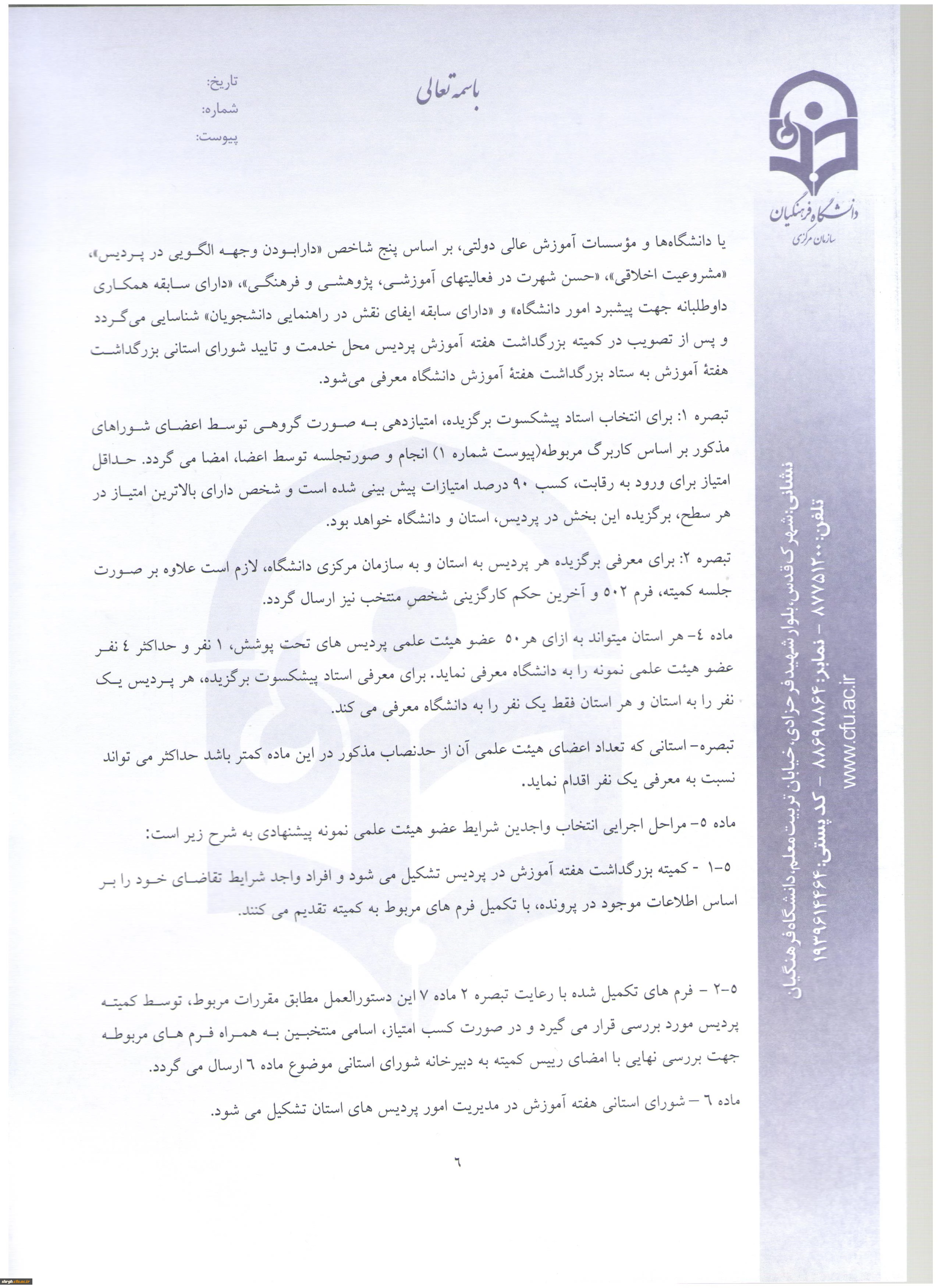 شیوه نامه بزرگداشت هفته آموزش و دستورالعمل انتخاب اعضای هیئت علمی نمونه دانشگاه 5