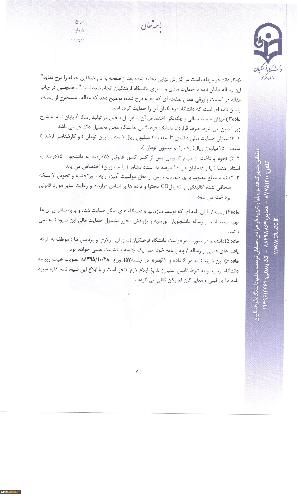 ابلاغ شیوه نامه حمایت از رساله دکتری وپایان نامه
