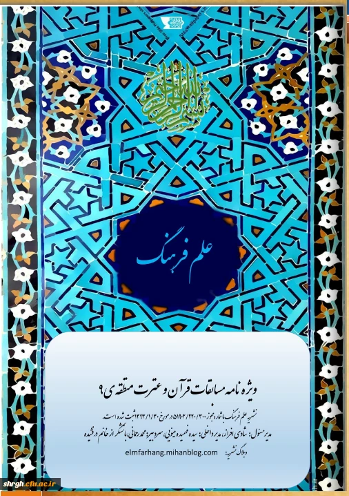 امتیاز دهید : ویژه نامه بیست و هفتمین مسابقات منطقه ای قرآن و عترت منطقه 9 دانشگاه فرهنگیان 3 چهارشنبه 10 خرداد 1396 ساعت 11:50