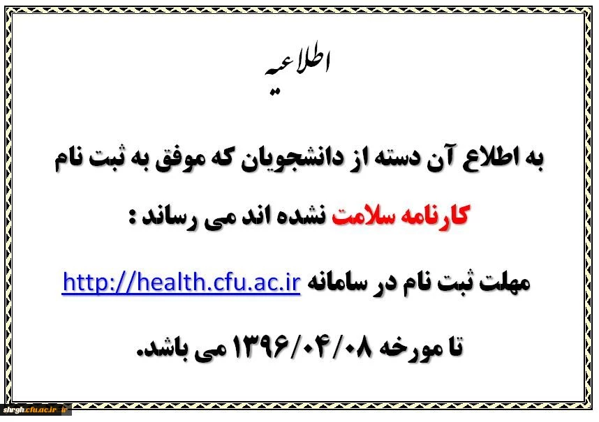 اطلاعیه کارنامه سلامت دانشجومعلمان 2