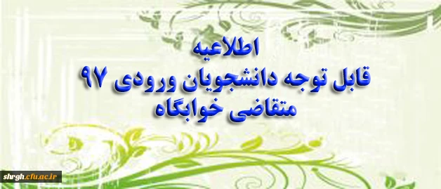 قابل توجه دانشجویان جدیدالورود سال 97 متقاضی خوابگاه 2