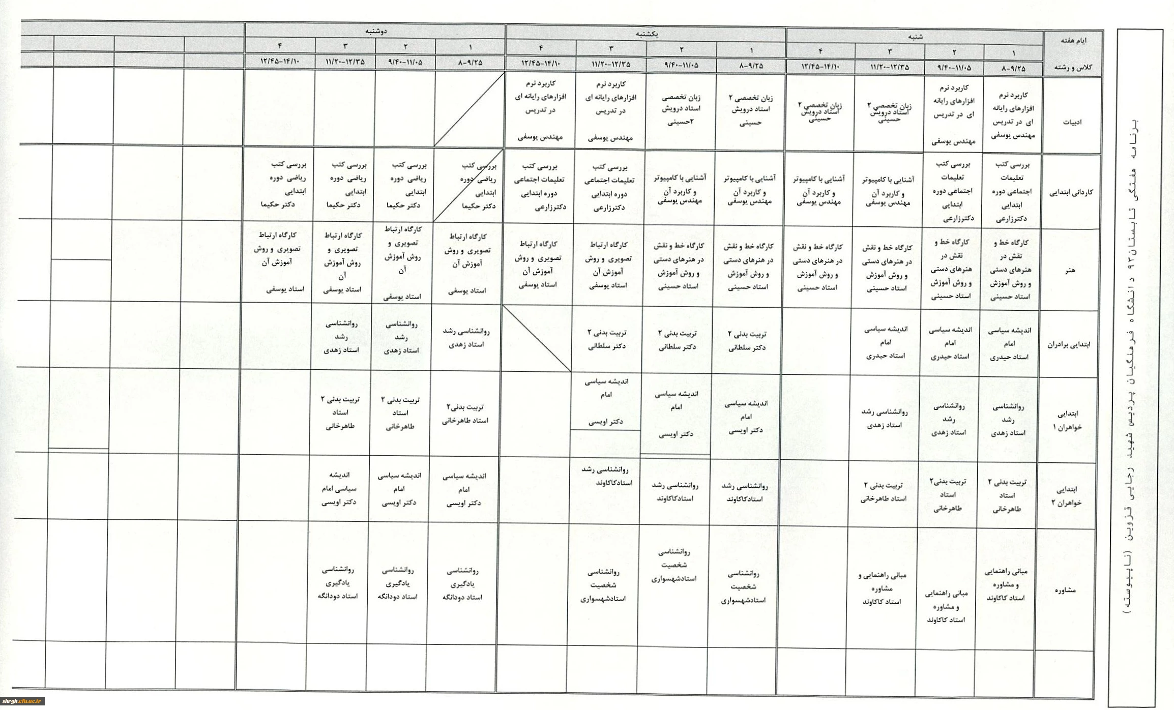 برنامه هفتگی ترم تابستان 93 دانشجویا ناپیوسته