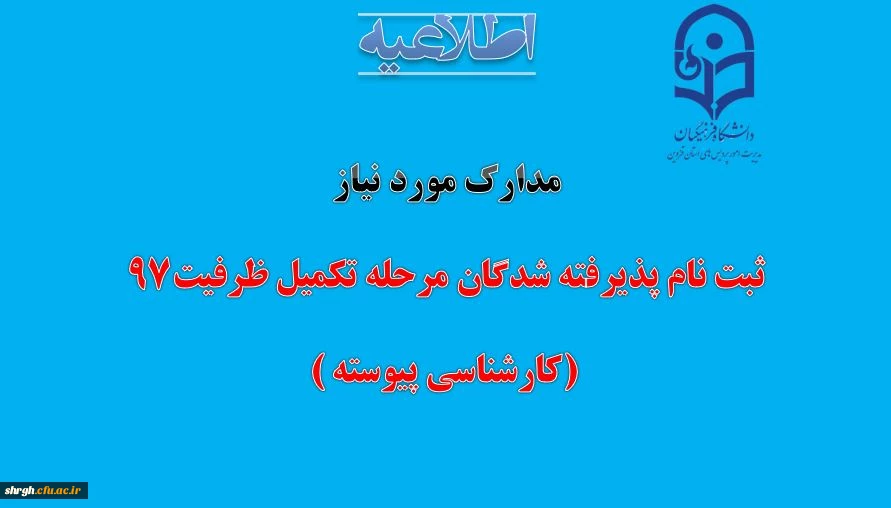 امتیاز دهید : مدارک لازم جهت ثبت نام پذیرفته شدگان مرحله تکمیل ظرفیت کارشناسی پیوسته 97 2 دوشنبه 24 دی 1397 ساعت 8:53