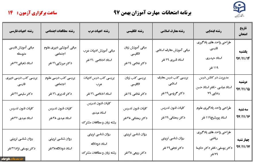 برنامه امتحانات بهمن 97 ویژه مهارت آموزان 2