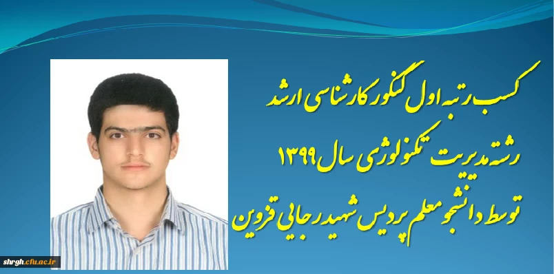 کسب رتبه اول آزمون کارشناسی ارشد رشته تکنولوژی آموزشی توسط دانشجوی پردیس شهید رجایی قزوین 2