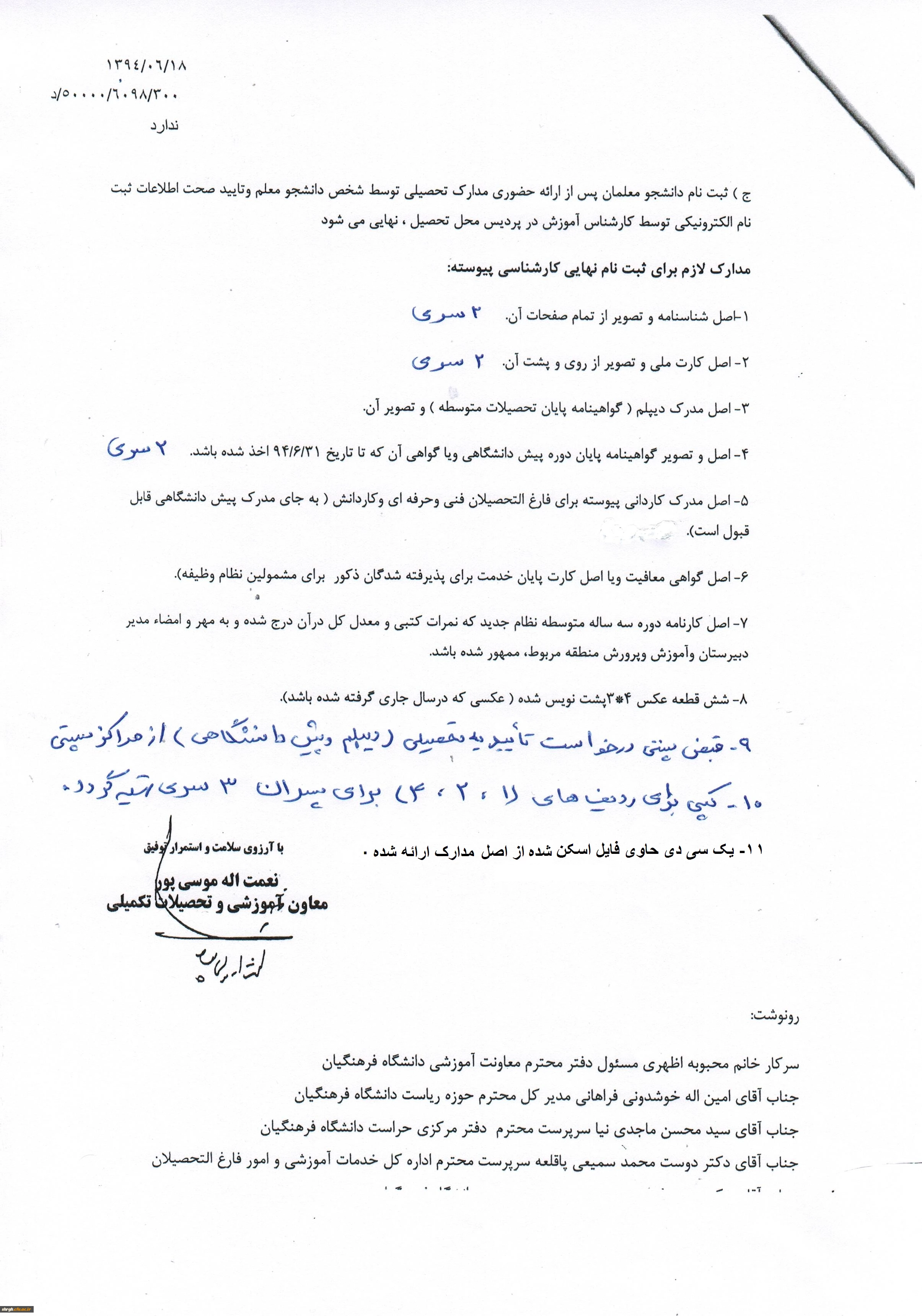 مدارک لازم برای ثبت نام پذیرفته شدگان ورودی 1394